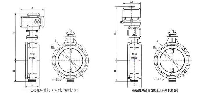 H1根據電動通(tong)風蝶閥所需力(li)矩而定,配置電(dian)動執行器不同(tong),外形尺寸也不(bú)相同,詳❤️情🛀請咨(zi)詢公司技術部(bù)!